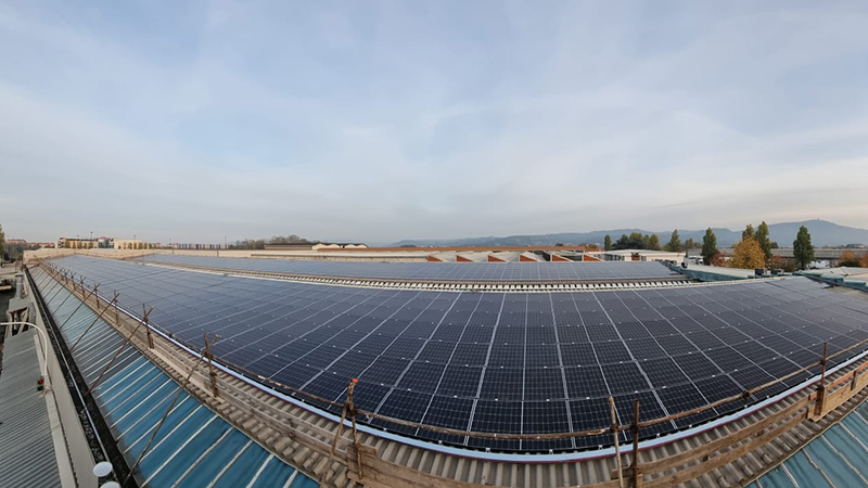 130 kW di fotovoltaico che produrrà 142.000 kWh e coprirà il 40% del fabbisogno istantaneo della società con un risparmio annuo di C02 pari a 50.040 kg.